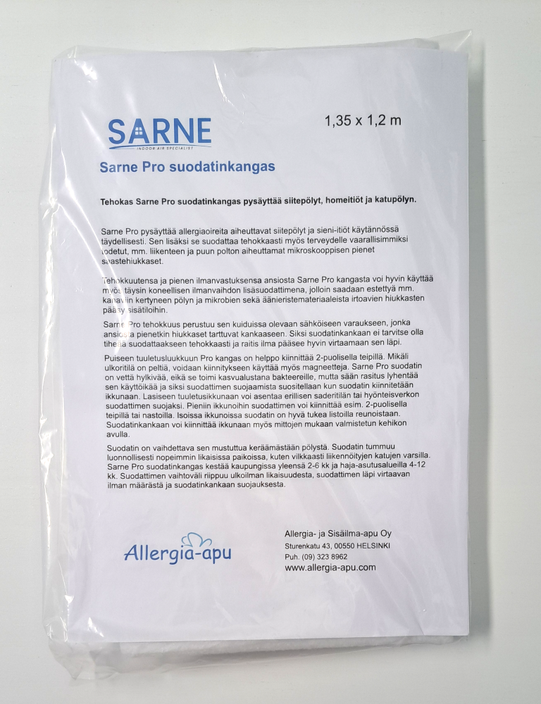 Sarne Pro is more than just a pollen filter – it also efficiently blocks much smaller and more harmful fine particles caused by traffic, wood burning, forest fires, and long-range pollution transport.